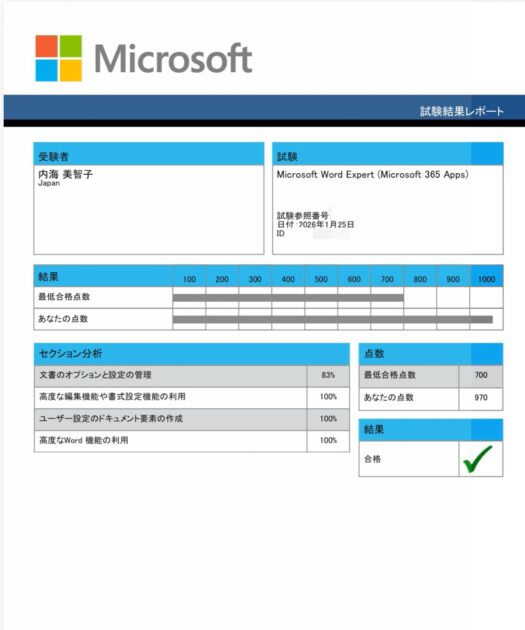 実はこの度、MOS Word 365 エキスパートに合格しました! 私にとっては大きな挑戦でしたが、無事に形にできてホッとしています。